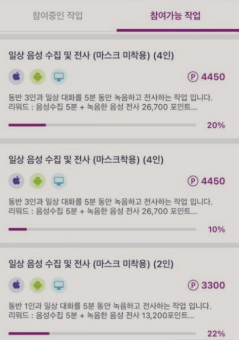 제가 수행한 업무외에도 크라우드웍스에는 정말 다양한 수익형 미션들이 많이 존재합니다.